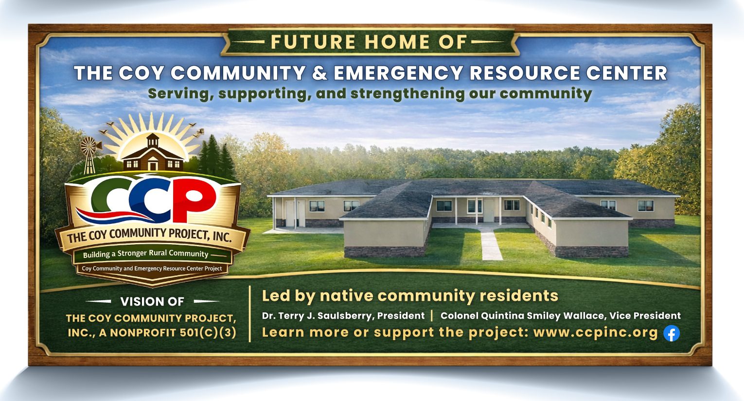 The Coy Community Project, Inc. is a nonprofit 501(C)(3) organization rooted in the rural community, led by dedicated professionals and native residents with extensive experience in federal government, military service, education administration, higher education, and private enterprise.